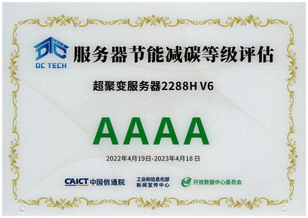 近日,由中国信息通信研究院(以下简称“中国信通院”)、工业和信息化部新闻宣传中心主办,新型数据中心推进计划和开放数据中心委员会承办的“新型数据中心研讨会暨《数据中心白皮书(2022年)》发布会”在北京举行。发布会上,超聚变服务器获得DC-Tech(数据中心等级评估认证)服务器节能减碳等级评估AAAA证书,成为x86架构最节能的服务器之一,实测结果在x86里处于领先地位。
