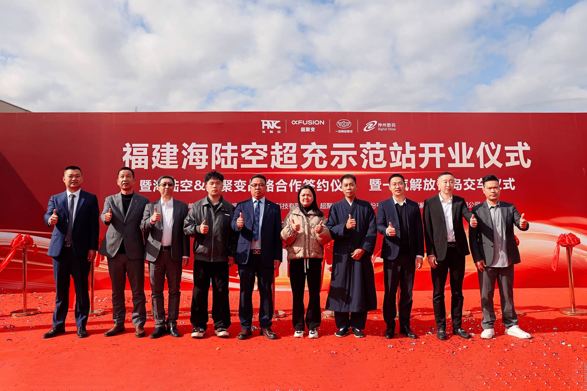 海陆空实业(福建)有限公司董事长刘仪方在致辞中表示,重卡超充示范站在福建长乐松下镇顺利落地,并与超聚变达成战略合作、首批交付一汽解放20台新能源重卡,是积极响应国家“双碳”目标、推动绿色能源网络建设与产业生态融合的重要举措,将有力助推福建新能源产业高质量发展。