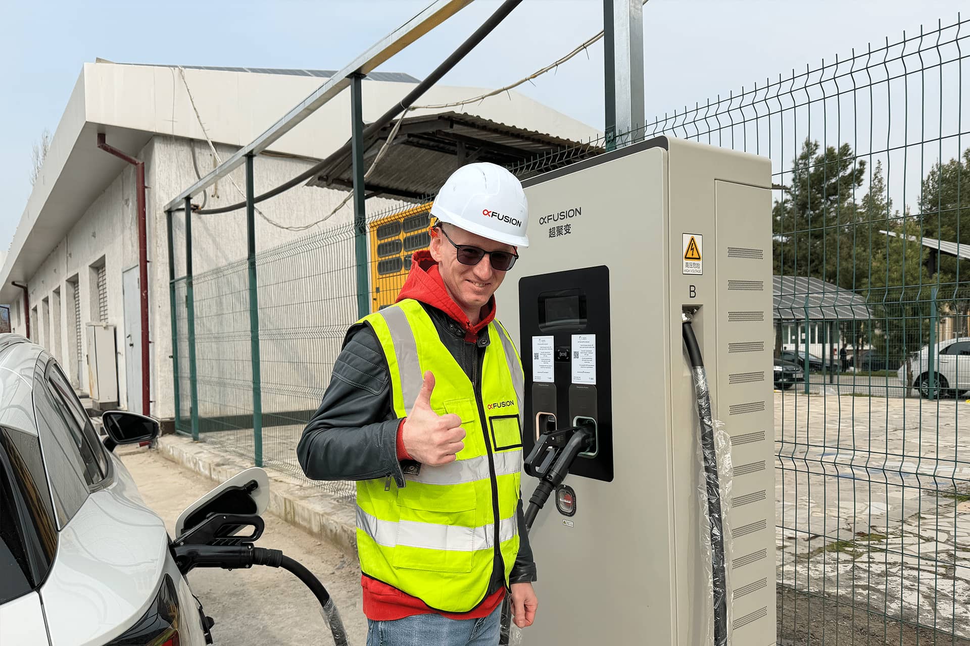 在这一背景下,市场需要的不只是“有充电桩”,更是能够快速部署、稳定运行、长期服务当地用户的充电解决方案。凭借高效、可靠、智能的产品能力,超聚变FusionWatt充电桩获得乌兹别克斯坦客户认可,成功实现中亚市场首单落地。从设备交付、安装调试到上线运营,超聚变团队围绕项目关键环节高效协同,保障设备在短时间内完成部署并投入运营。目前,该充电站已面向当地电动出租车及私家车主开放,充电服务稳定运行。