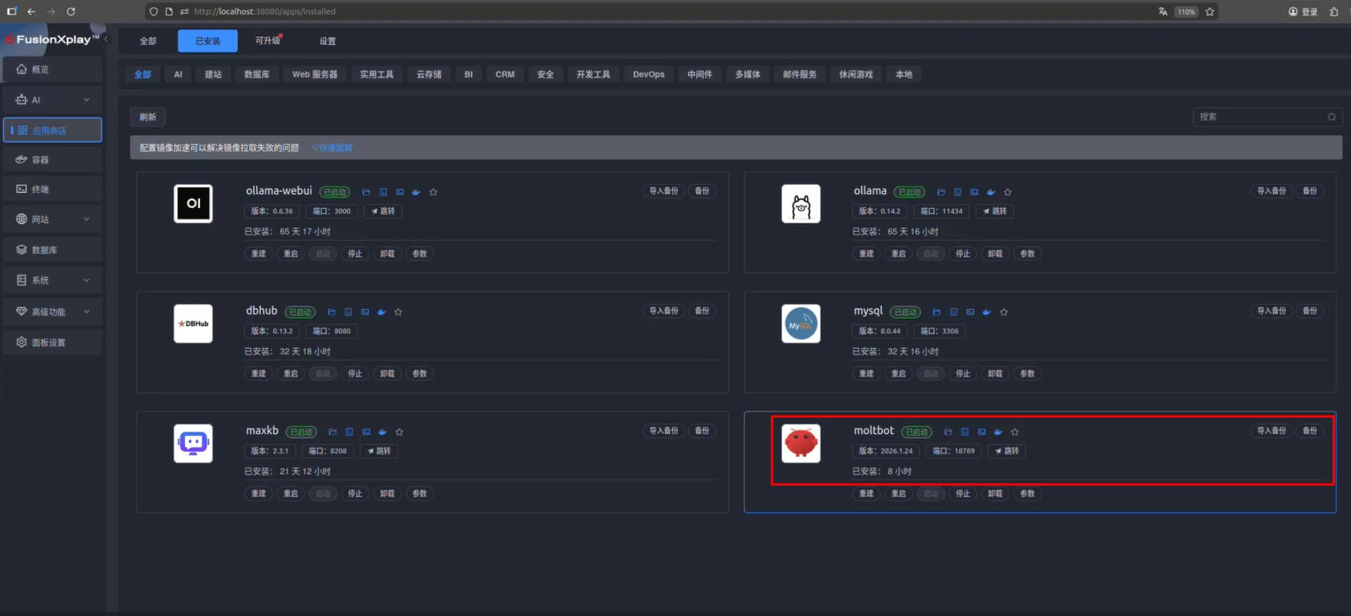 同时,FusionXpark™采用本地化部署模式,实现计算与数据处理全程在本地完成,契合Clawdbot本地执行特性,筑牢隐私合规防线,满足个人及企业级安全需求。作为面向开发者的专属平台,FusionXpark™提供独立桌面级算力,避免资源争抢,显著提升Clawdbot开发、调试与运行的全流程效率;平台内置FusionXplay™本地AI应用市场,让Clawdbot开箱即用、免复杂配置,进一步降低部署与使用门槛。