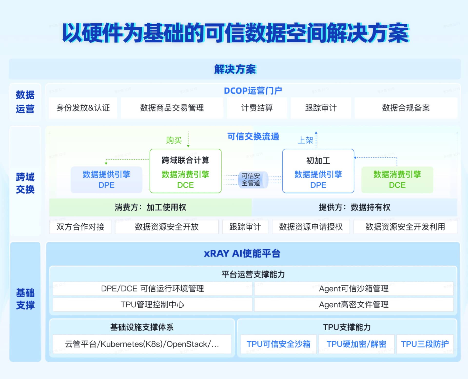 针对上述挑战,超聚变携手数鑫科技,构建以“基础支撑+跨域交换+数据运营”的全栈解决方案。依托超聚变xRAY AI使能平台,实现“硬件根信任+软件细管控”的深度协同,为AI+数据安全高效流通注入强劲动能。