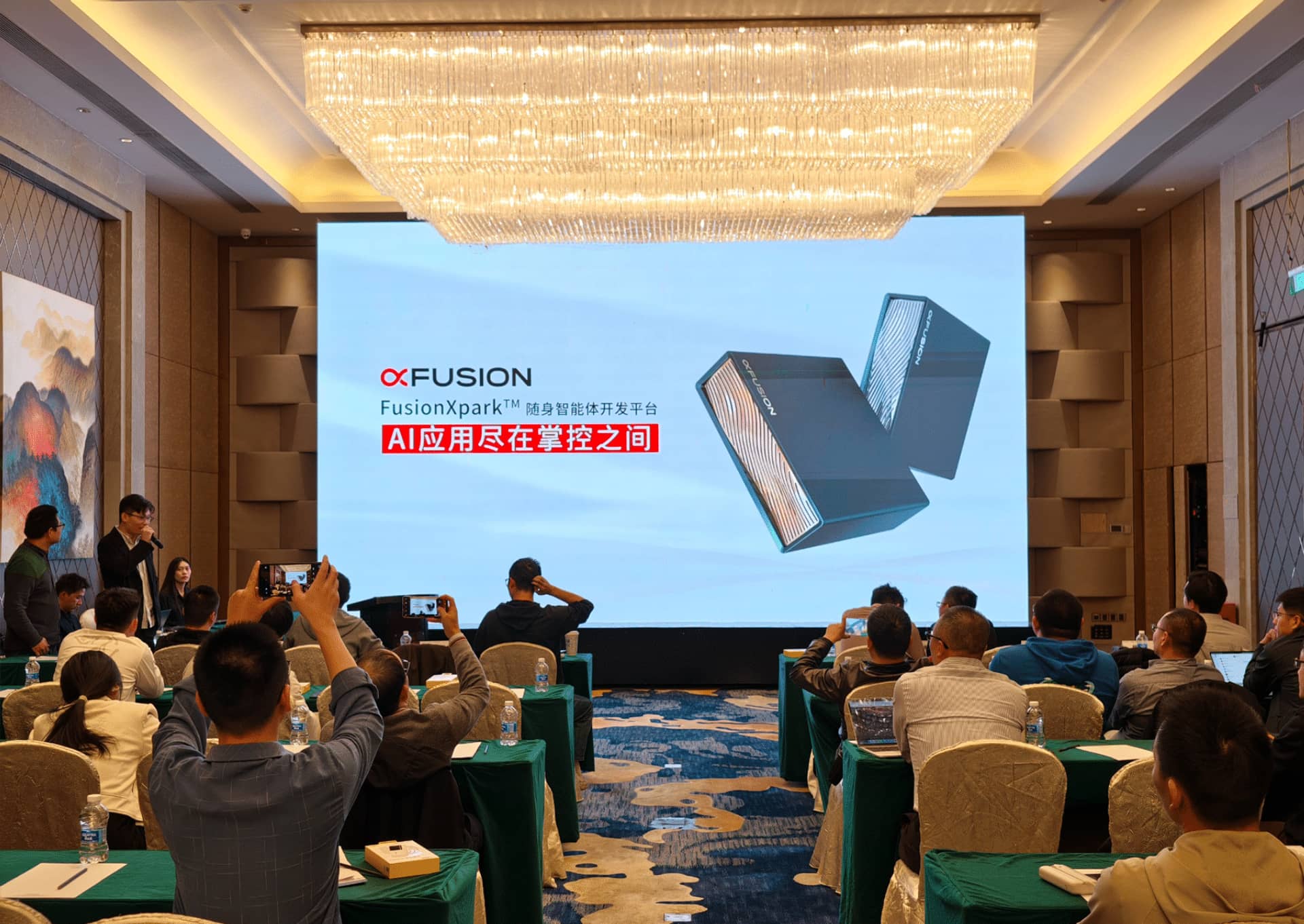 在备受期待的FusionXpark™真机体验环节,超聚变FusionOne AI解决方案架构师陈琪与飞致云南区售前总监徐松通过现场真机演示,直观展现了FusionXpark™的操作流程、功能特性与运行效果。现场来宾踊跃参与互动,近距离感受产品的便捷性与强大性能,围绕技术细节、应用场景、合作模式等问题展开深入交流。