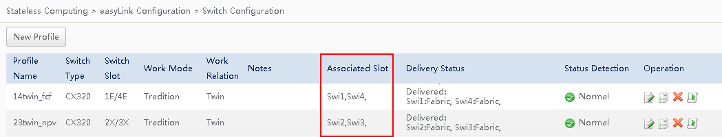If no slot is associated with a profile, the value of Associated Slot for this profile is None.