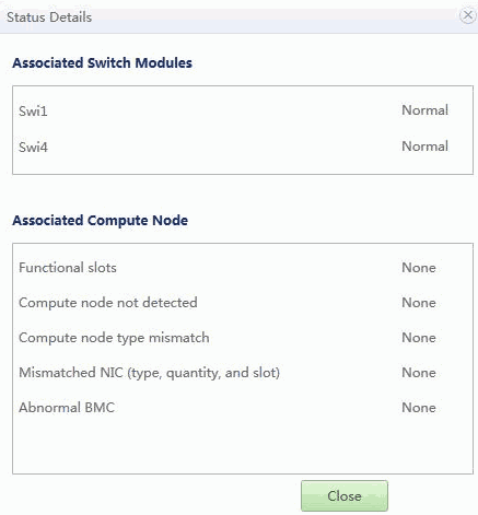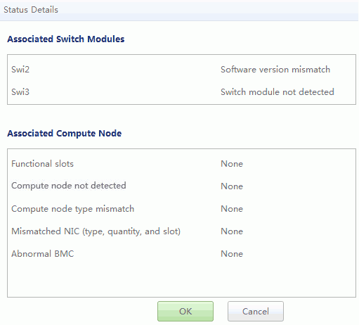 Switch modules are abnormal if their types do not match, their software versions do not match, their version query times out their BMCs are abnormal, or the Ethernet switch module passwords are incorrect.
